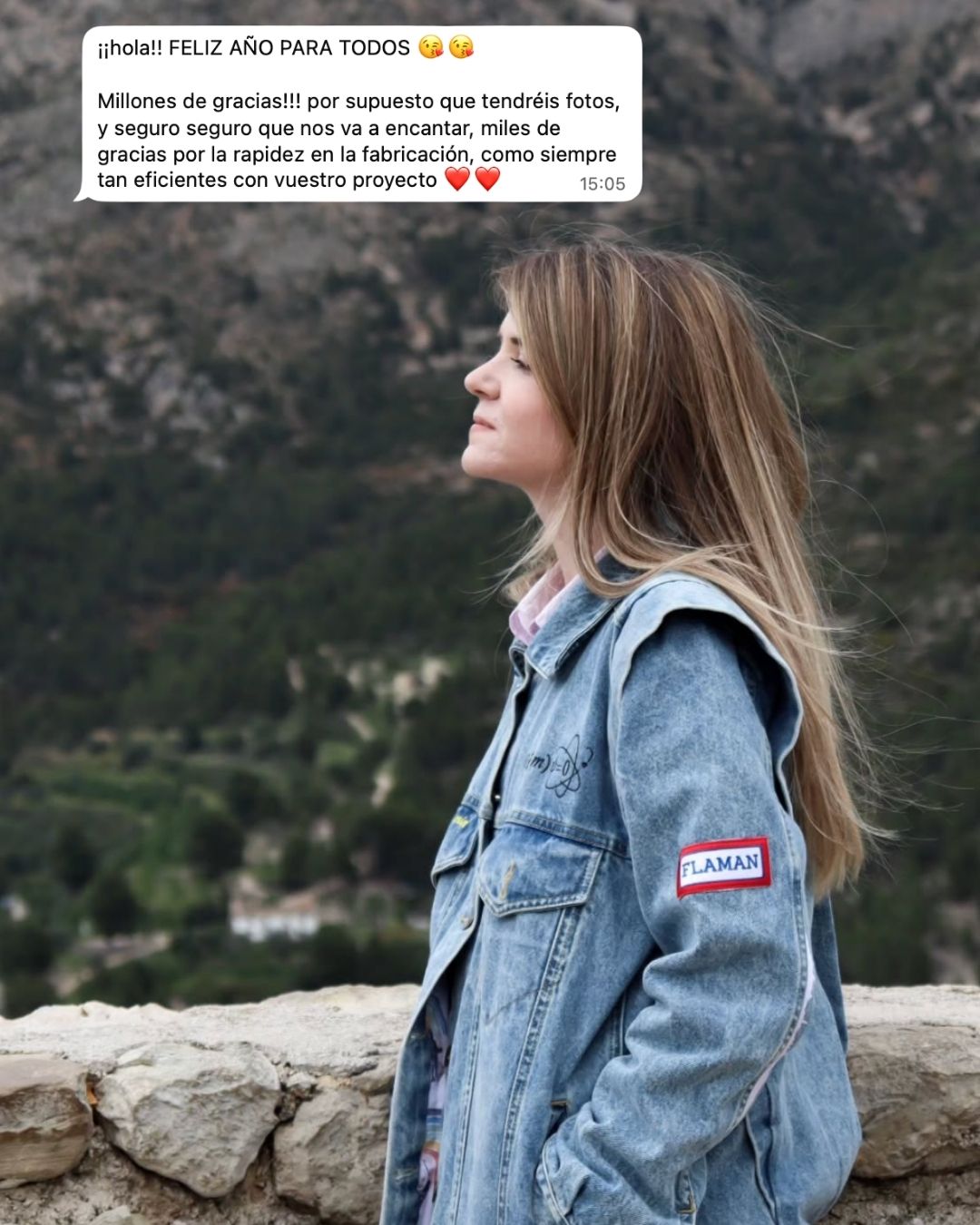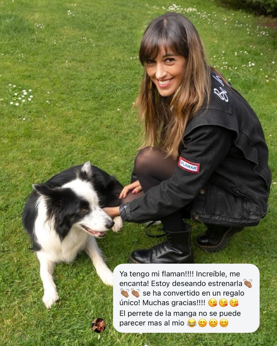 Encantada con mi chaqueta Flaman personalizada. Pude poner la caricatura de mi perro y quedó espectacular. La calidad es top, abriga un montón y es súper original. ¡Recomendada 100%!