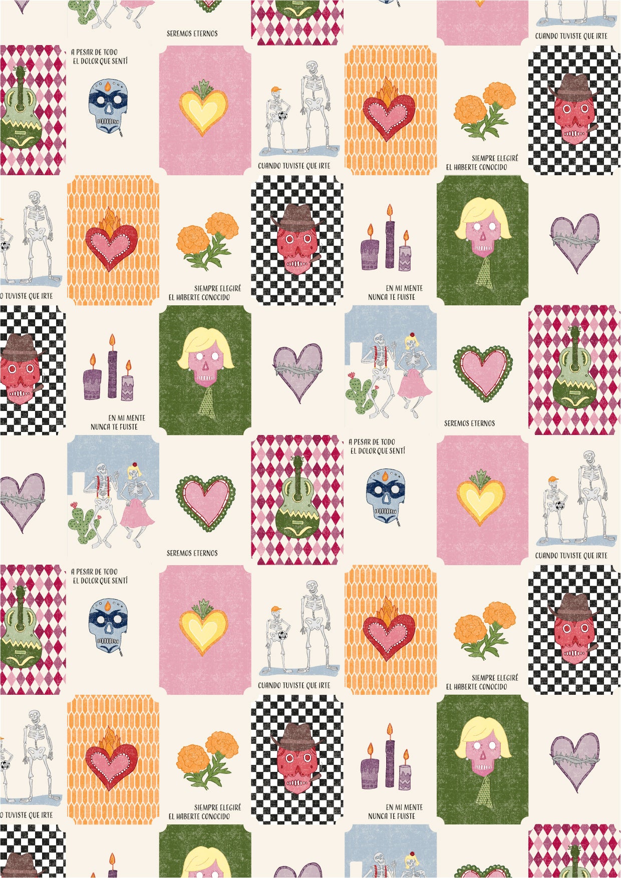 El forro Nunca te fuiste está inspirado en el Día de Muertos; es un día para recordar y celebrar a quienes amamos. Nos enseña que el amor trasciende la ausencia, y que recordar es un acto de cariño que nunca termina. Es sin duda una de las fiestas mas bonitas que existen y en Flaman quisimos crear nuestro propio altar con un forro en el que aparecen todas esas personas que en nuestra mente nunca se fueron y que nos inspiran cada día. Porque sabemos que estaríais orgullosos de nosotras.