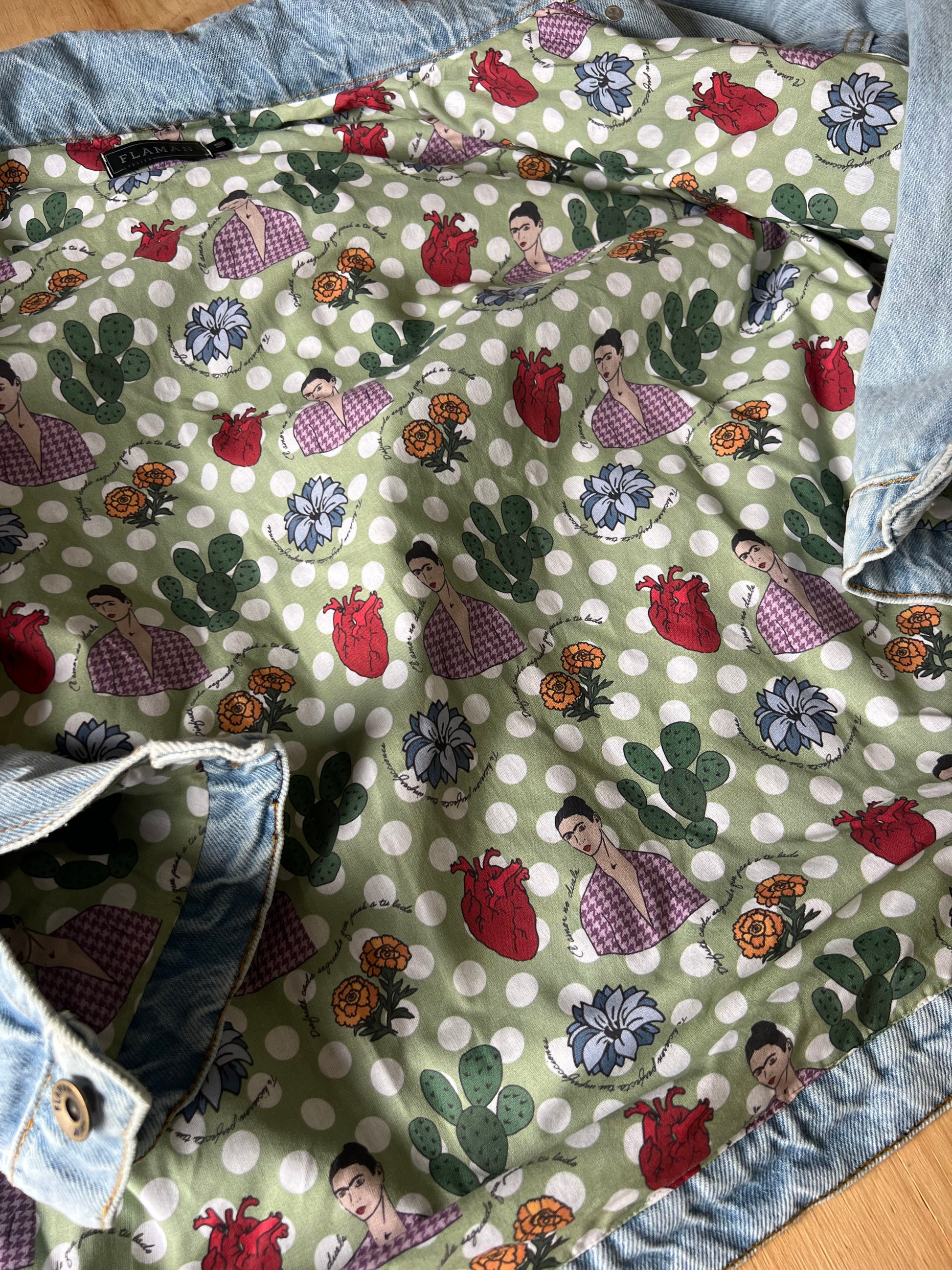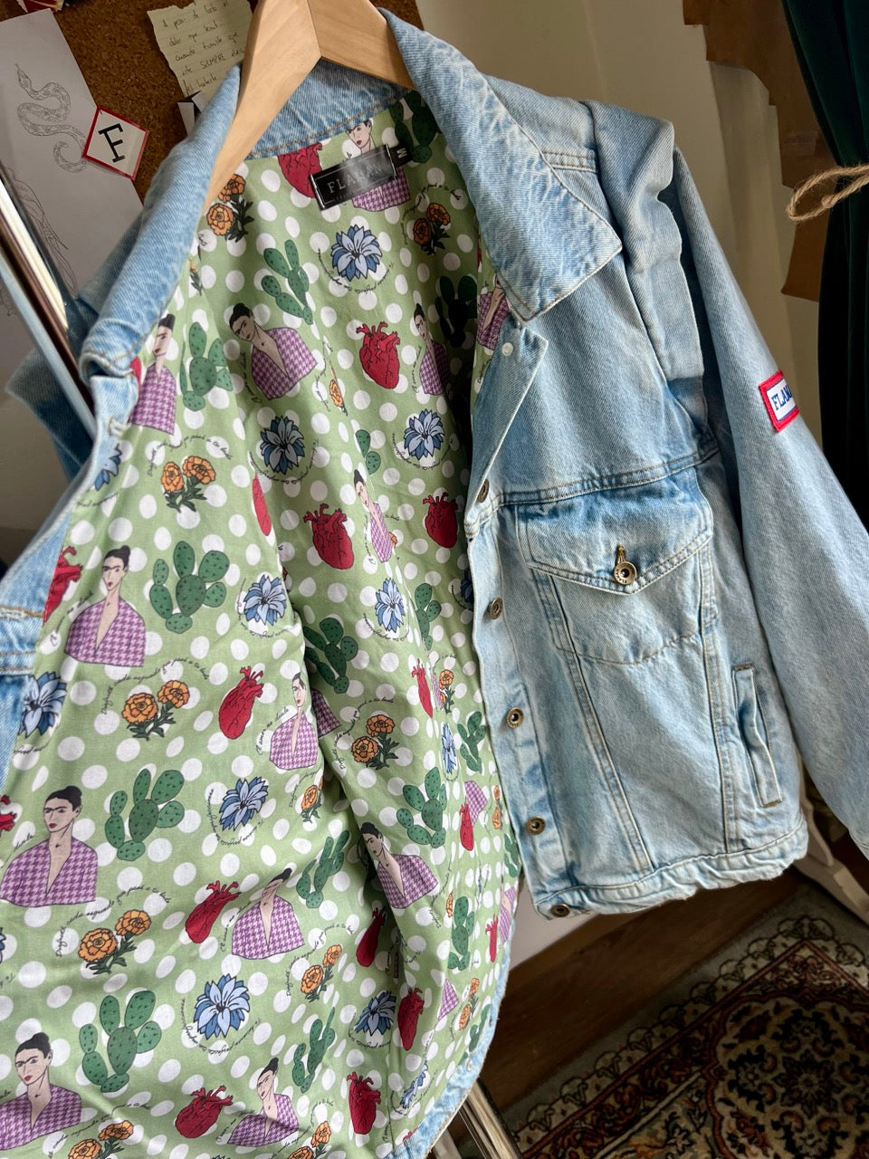 Cada chaqueta se crea de forma individual. Primero, nos cuentas tu idea, historia o a quién va destinada. A partir de ahí, diseñamos juntas el bordado y el forro para que refleje ese mensaje especial. Todo se realiza en nuestro taller en Asturias, con mucho mimo.