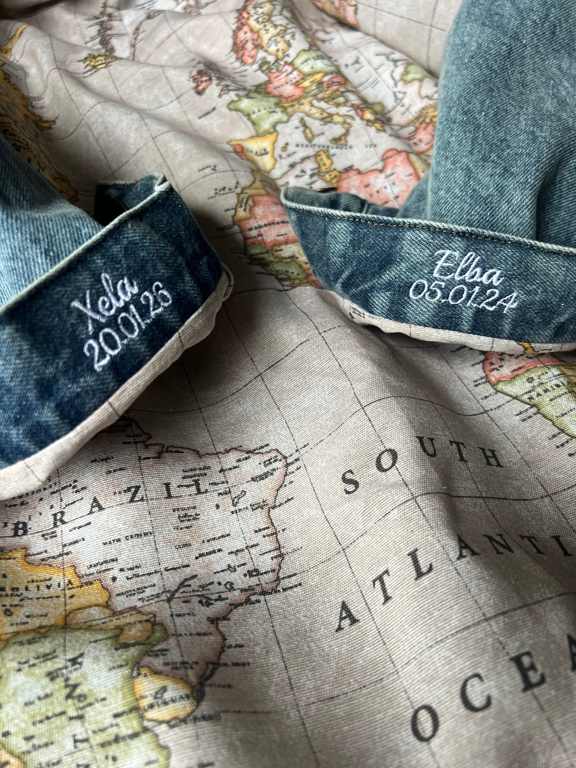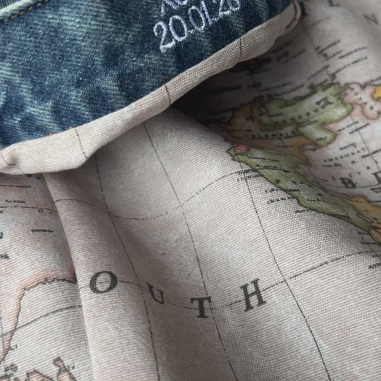 Este set lo hace sencillo para regalar(te): una Tristan con el forro Mapamundi y los nombres de tus personas favoritas bordados en los puños. Un detalle personalizado para que los lleves contigo siempre.