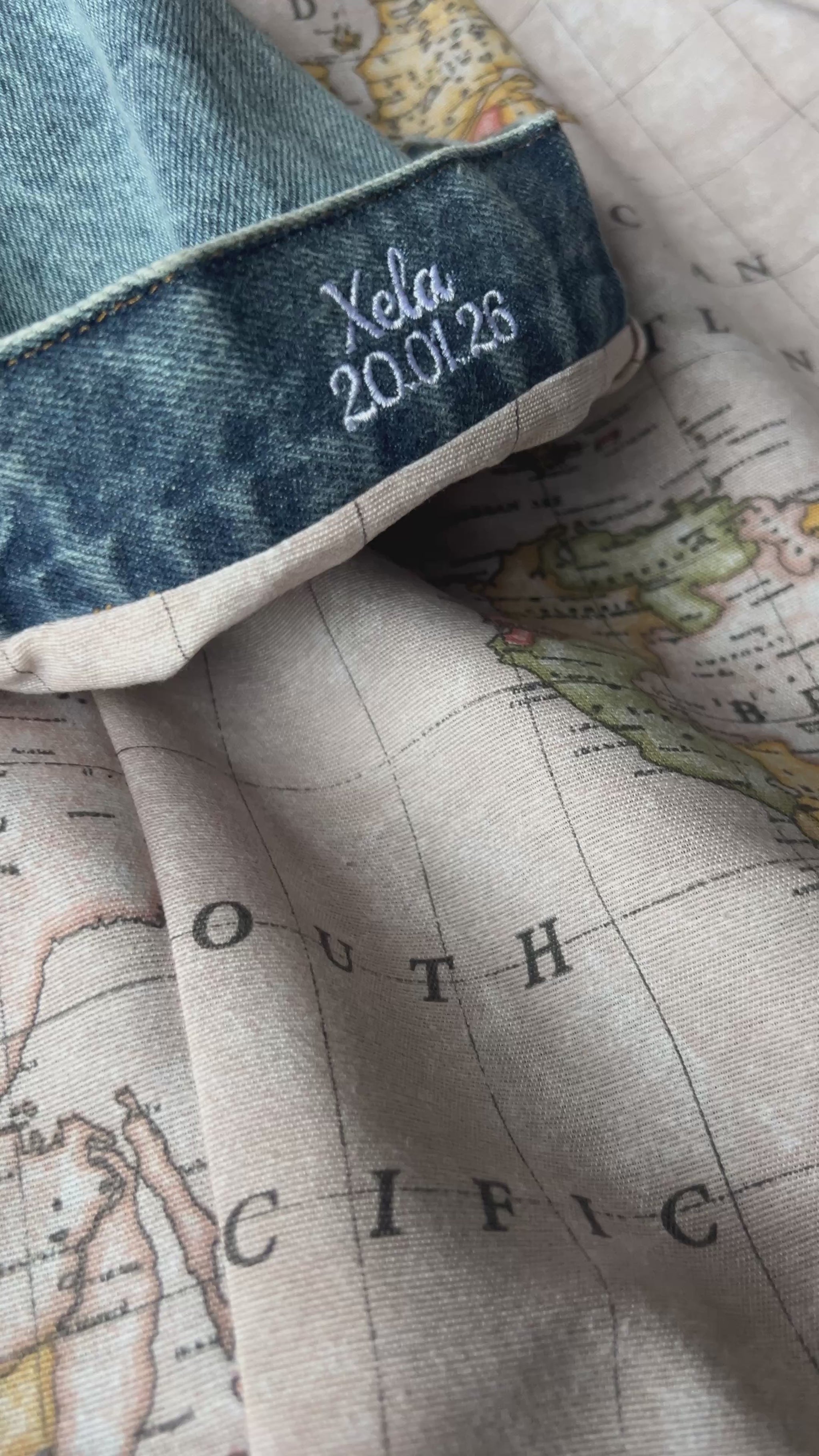 Cada chaqueta se crea de forma individual. Primero, nos cuentas tu idea, historia o a quién va destinada. A partir de ahí, diseñamos juntas el bordado y el forro para que refleje ese mensaje especial. Todo se realiza en nuestro taller en Asturias, con mucho mimo.