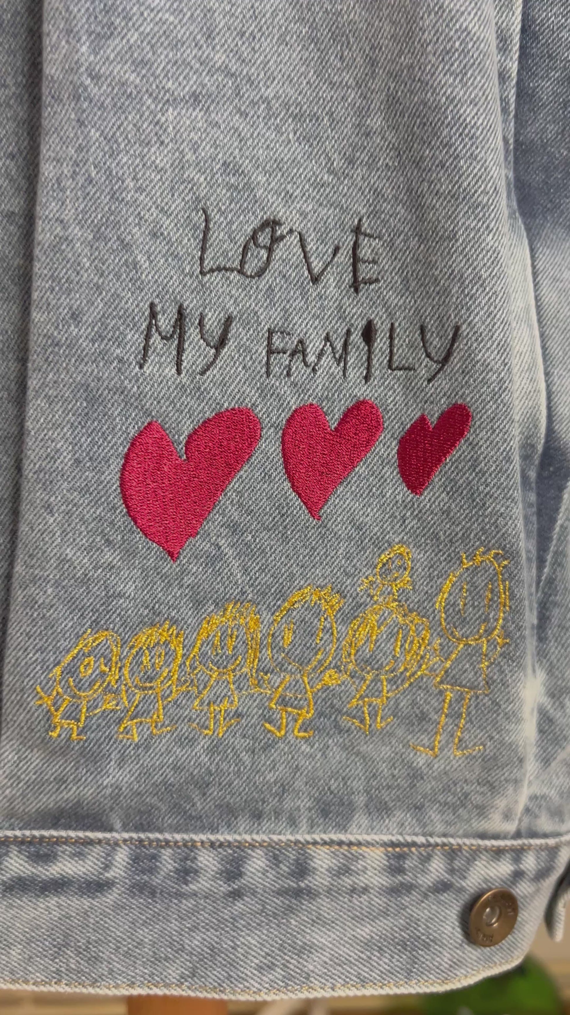 Cada chaqueta puede contar tu historia: bordamos la fecha en la que conociste a tu primer amor, la frase de tu peli favorita, el nombre de tu primera mascota o el dibujo que te hizo tu sobrino y tienes colgado en tu nevera. ¡Que la gente vea el arte que tiene! Tú eliges el mensaje, nosotros lo hacemos eterno.