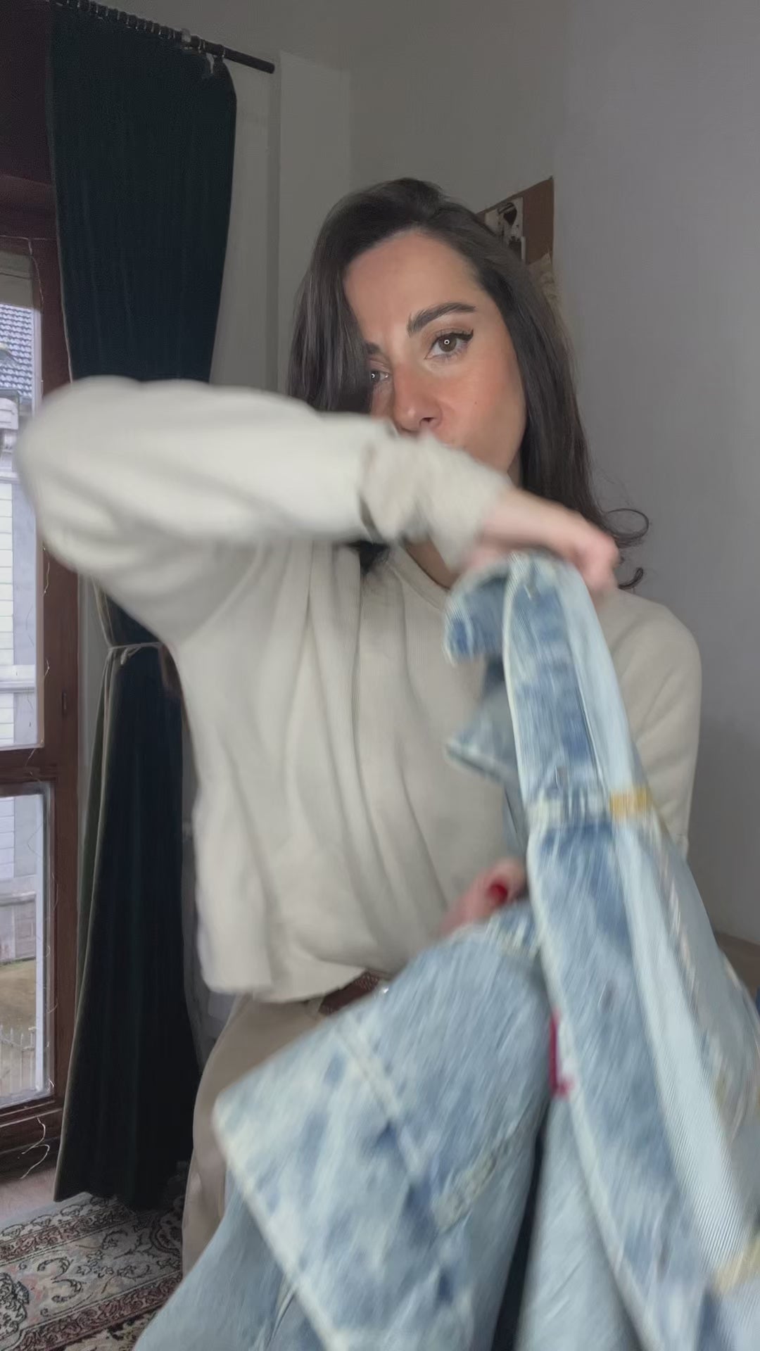 Nuestras denims son oversize, dan bastante talla. Normalmente aconsejamos que se pida la talla habitual para no perder el efecto amplio. Si te gusta el efecto más encajadito, entonces recomendamos que elijas una talla menos.
