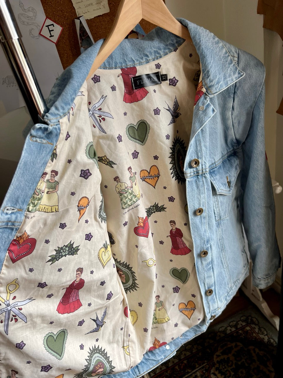 Cada chaqueta se crea de forma individual. Primero, nos cuentas tu idea, historia o a quién va destinada. A partir de ahí, diseñamos juntas el bordado y el forro para que refleje ese mensaje especial. Todo se realiza en nuestro taller en Asturias, con mucho mimo.